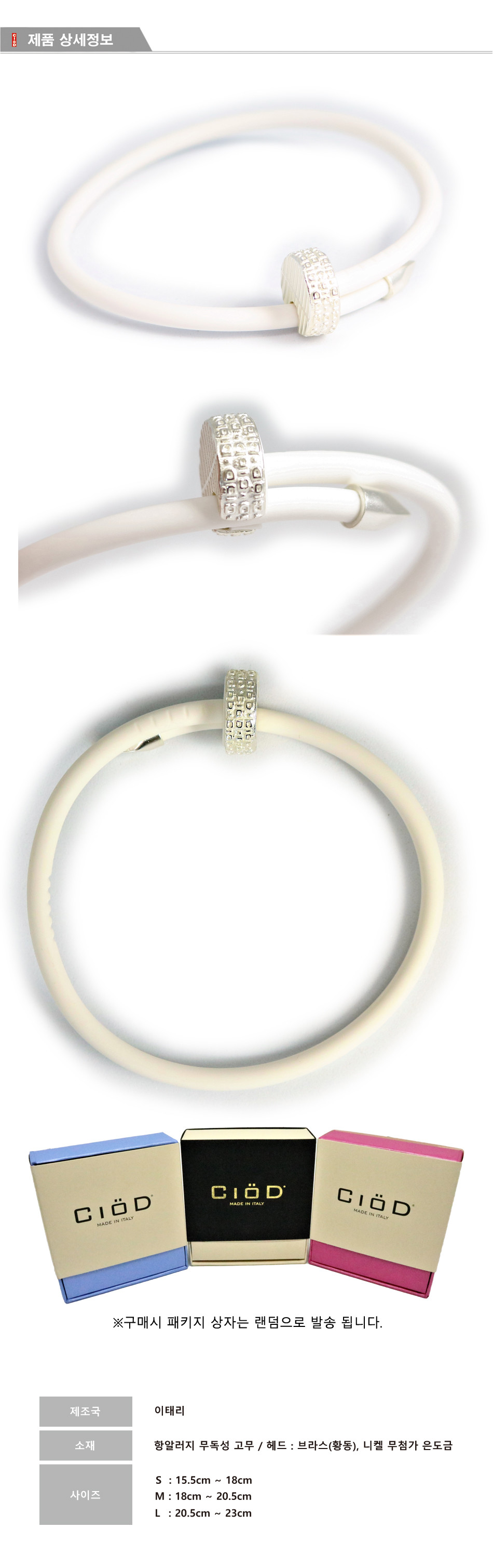 이탈리아 Luca Cantamessa에 의해 탄생한 CiöD는 우리 삶 속에 흔히 볼 수 있는 투박하고 거친 "못"에서 세련된 악세사리로의 화려한 변화. 이질적인 두 물체, 고무와 금속의 조화로운 결합으로 유럽 여러 매체로부터 찬사와 호평을 받으며, 세계 최고의 편집 매장 파리 콜레트 입점에 성공한 CiöD.