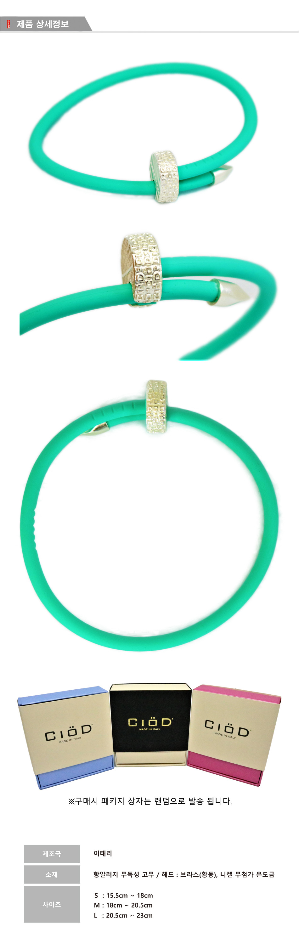 이탈리아 Luca Cantamessa에 의해 탄생한 CiöD는 우리 삶 속에 흔히 볼 수 있는 투박하고 거친 "못"에서 세련된 악세사리로의 화려한 변화. 이질적인 두 물체, 고무와 금속의 조화로운 결합으로 유럽 여러 매체로부터 찬사와 호평을 받으며, 세계 최고의 편집 매장 파리 콜레트 입점에 성공한 CiöD.