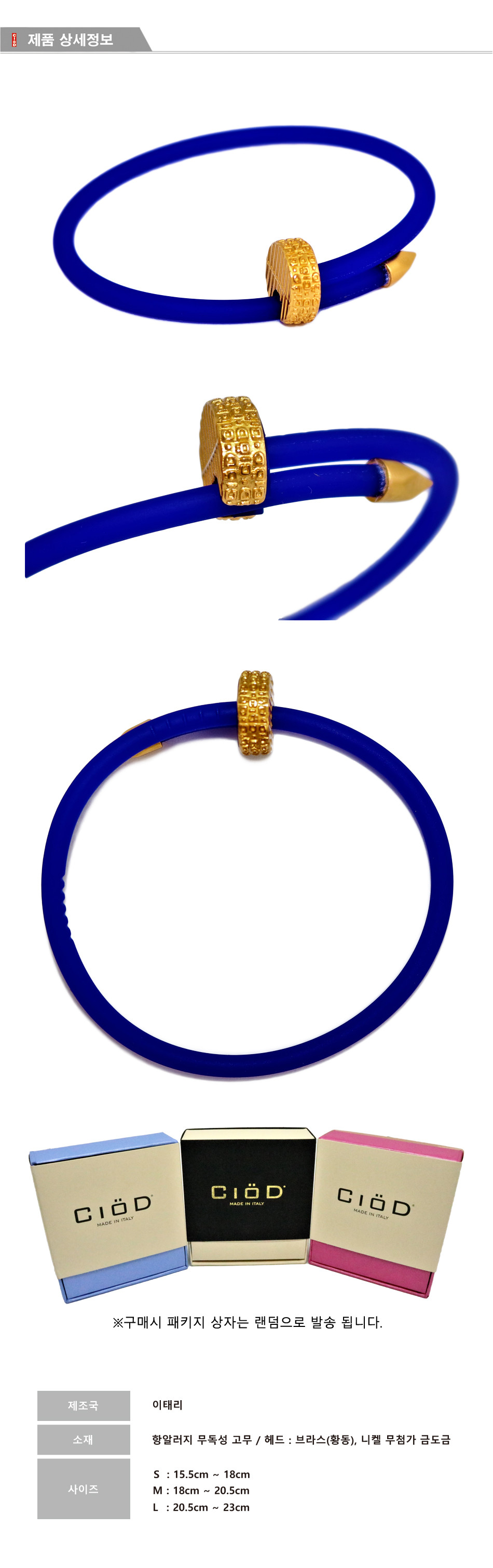 이탈리아 Luca Cantamessa에 의해 탄생한 CiöD는 우리 삶 속에 흔히 볼 수 있는 투박하고 거친 "못"에서 세련된 악세사리로의 화려한 변화. 이질적인 두 물체, 고무와 금속의 조화로운 결합으로 유럽 여러 매체로부터 찬사와 호평을 받으며, 세계 최고의 편집 매장 파리 콜레트 입점에 성공한 CiöD.