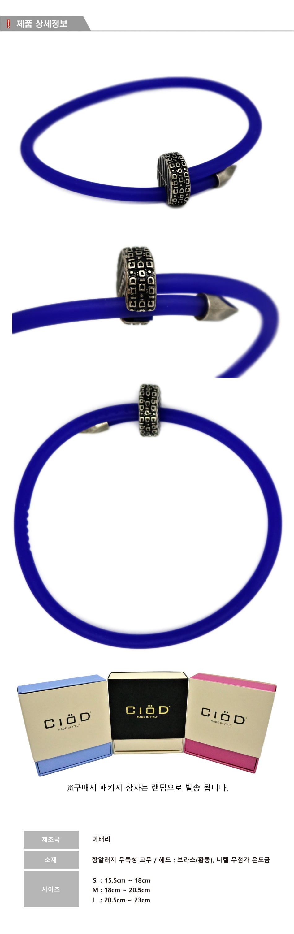 이탈리아 Luca Cantamessa에 의해 탄생한 CiöD는 우리 삶 속에 흔히 볼 수 있는 투박하고 거친 "못"에서 세련된 악세사리로의 화려한 변화. 이질적인 두 물체, 고무와 금속의 조화로운 결합으로 유럽 여러 매체로부터 찬사와 호평을 받으며, 세계 최고의 편집 매장 파리 콜레트 입점에 성공한 CiöD.