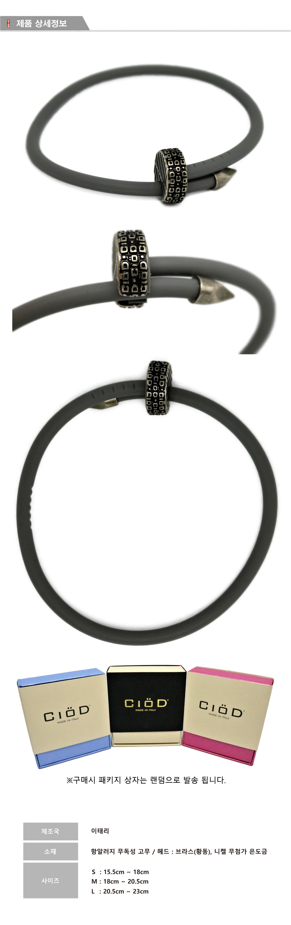 이탈리아 Luca Cantamessa에 의해 탄생한 CiöD는 우리 삶 속에 흔히 볼 수 있는 투박하고 거친 "못"에서 세련된 악세사리로의 화려한 변화. 이질적인 두 물체, 고무와 금속의 조화로운 결합으로 유럽 여러 매체로부터 찬사와 호평을 받으며, 세계 최고의 편집 매장 파리 콜레트 입점에 성공한 CiöD.