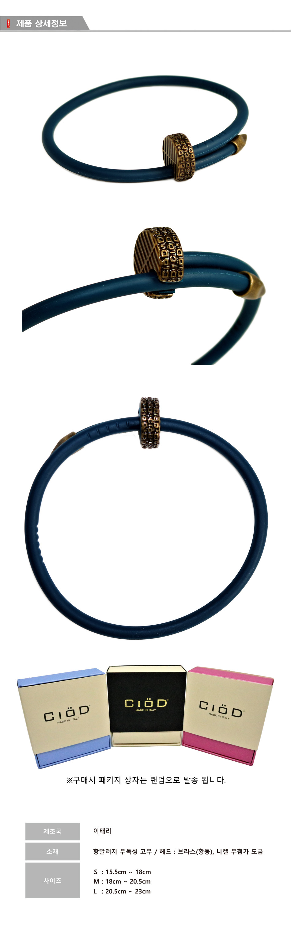 이탈리아 Luca Cantamessa에 의해 탄생한 CiöD는 우리 삶 속에 흔히 볼 수 있는 투박하고 거친 "못"에서 세련된 악세사리로의 화려한 변화. 이질적인 두 물체, 고무와 금속의 조화로운 결합으로 유럽 여러 매체로부터 찬사와 호평을 받으며, 세계 최고의 편집 매장 파리 콜레트 입점에 성공한 CiöD.