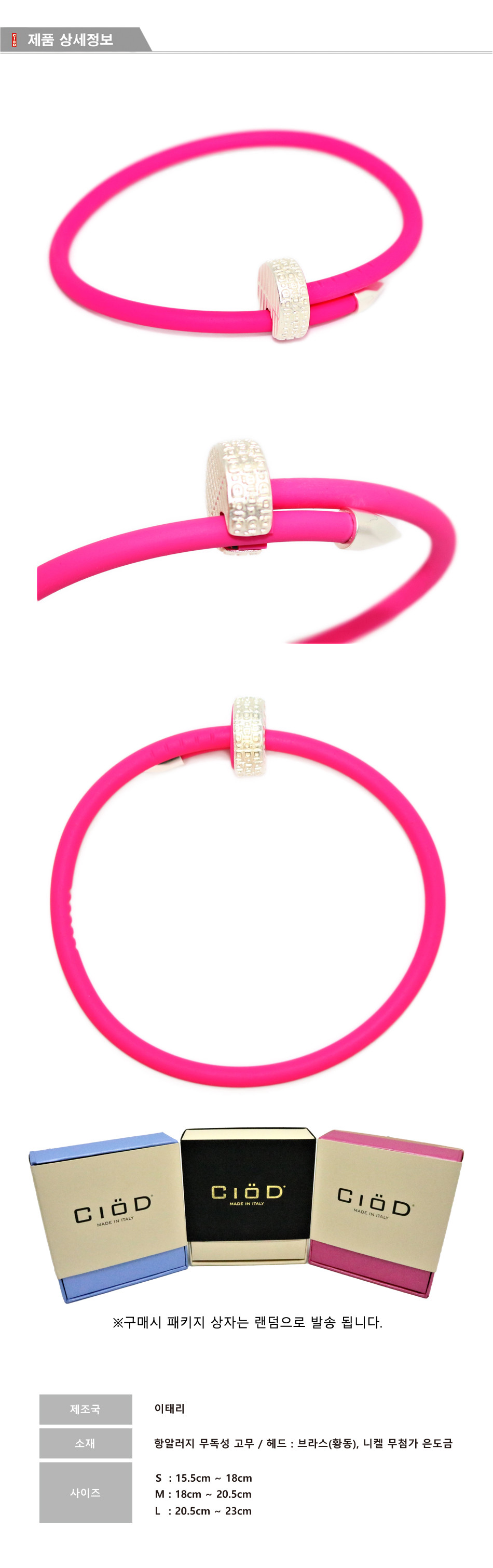 이탈리아 Luca Cantamessa에 의해 탄생한 CiöD는 우리 삶 속에 흔히 볼 수 있는 투박하고 거친 "못"에서 세련된 악세사리로의 화려한 변화. 이질적인 두 물체, 고무와 금속의 조화로운 결합으로 유럽 여러 매체로부터 찬사와 호평을 받으며, 세계 최고의 편집 매장 파리 콜레트 입점에 성공한 CiöD.