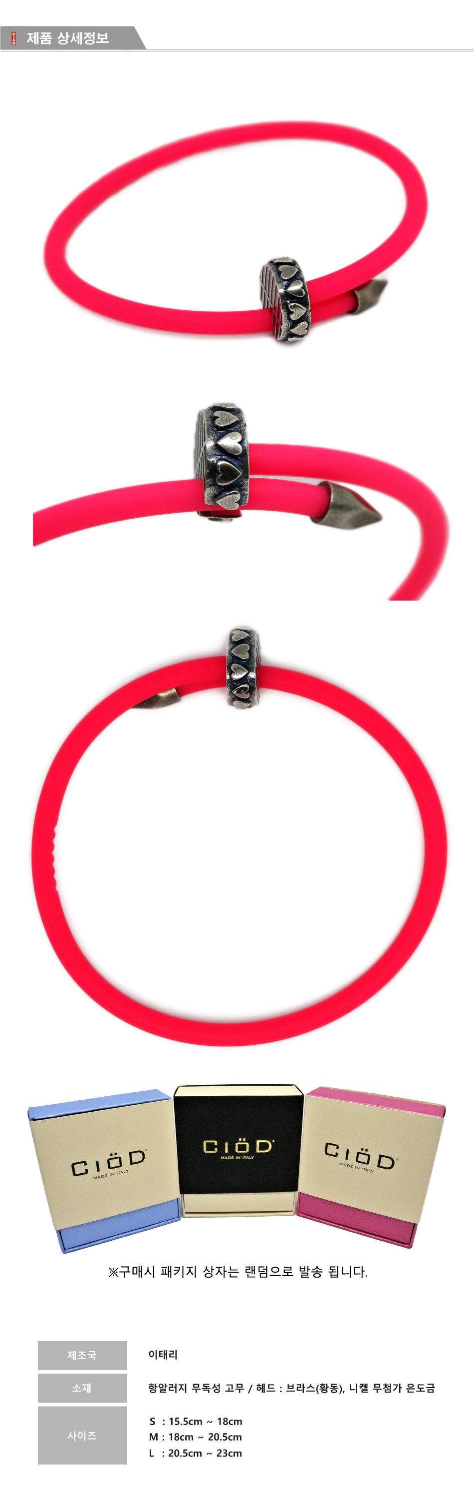 이탈리아 Luca Cantamessa에 의해 탄생한 CiöD는 우리 삶 속에 흔히 볼 수 있는 투박하고 거친 "못"에서 세련된 악세사리로의 화려한 변화. 이질적인 두 물체, 고무와 금속의 조화로운 결합으로 유럽 여러 매체로부터 찬사와 호평을 받으며, 세계 최고의 편집 매장 파리 콜레트 입점에 성공한 CiöD.